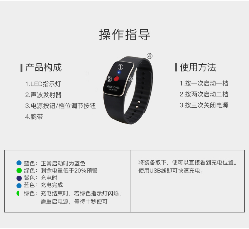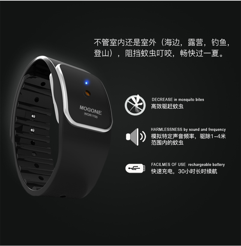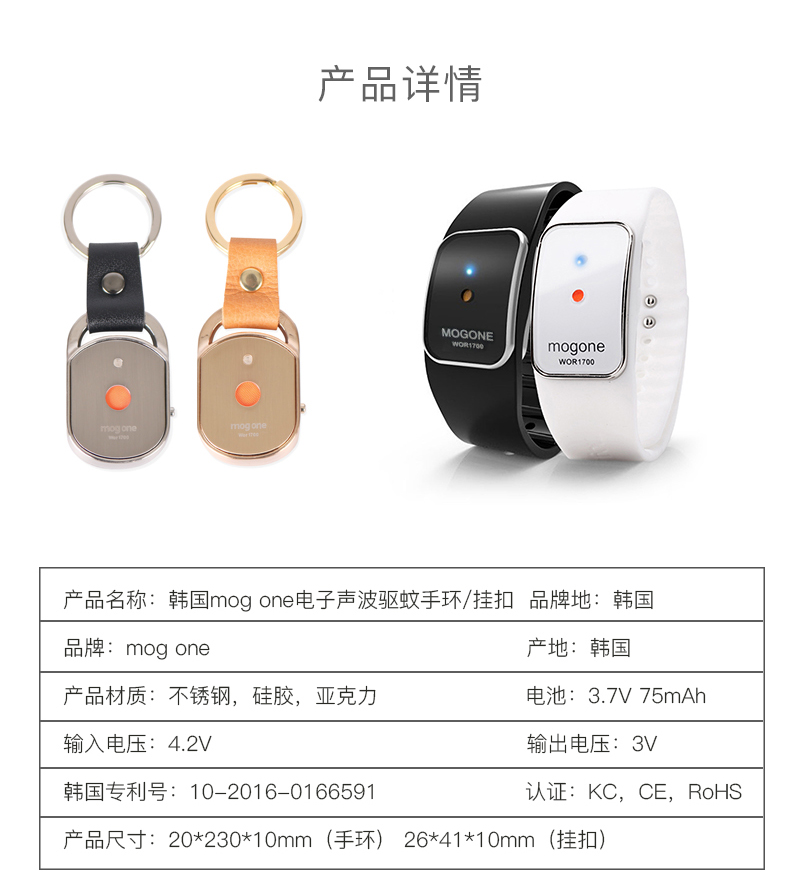 韩国mog one电子声波驱蚊手环/挂扣