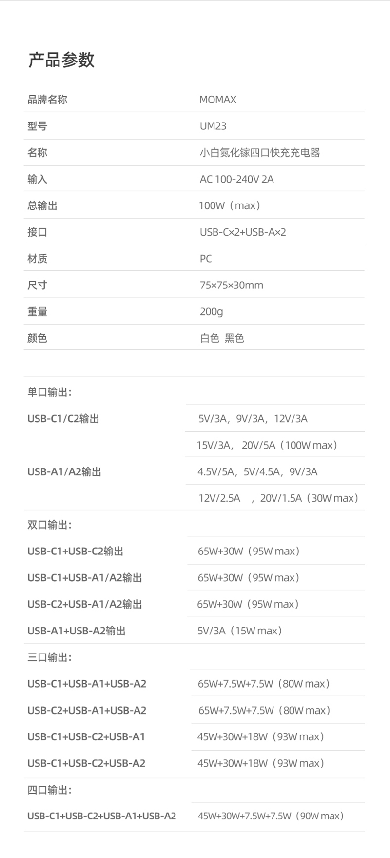 Momax 小白氮化镓四口快充充电器
